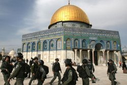 RNA - The Palestinian Ma'an news agency further reported on Monday that Israeli troops were heavily deployed in all over the compound as Muslim worshipers, after being barred from entering the holy site, gathered in one place to perform prayers together outside of the Dome of the Rock.