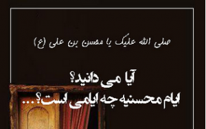 این ایام با نام محسنیه نامیده میشود. بنابراین بهتر است ابتدا این شخصیت و نام ایشان را بررسی کنیم تا مشخص شود این نام در روایات آمده است یا این نام بعدها از سوی جامعه متدینین بر ایشان نهاده شده است.