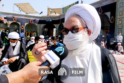 روحانیون و مردم قم در اعتراض به توهین نشریه فرانسوی به پیامبر اکرم (ص) در حرم مطهر حضرت معصومه (س) تجمع کردند.