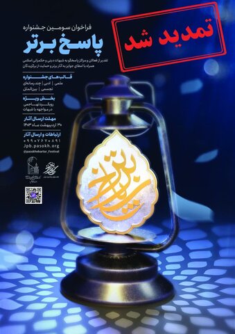 مهلت شرکت در سومین جشنواره پاسخ برتر از سراسر کشور و ارسال آثار تا پانزدهم خردادماه ۱۴۰۳ تمدید شد.