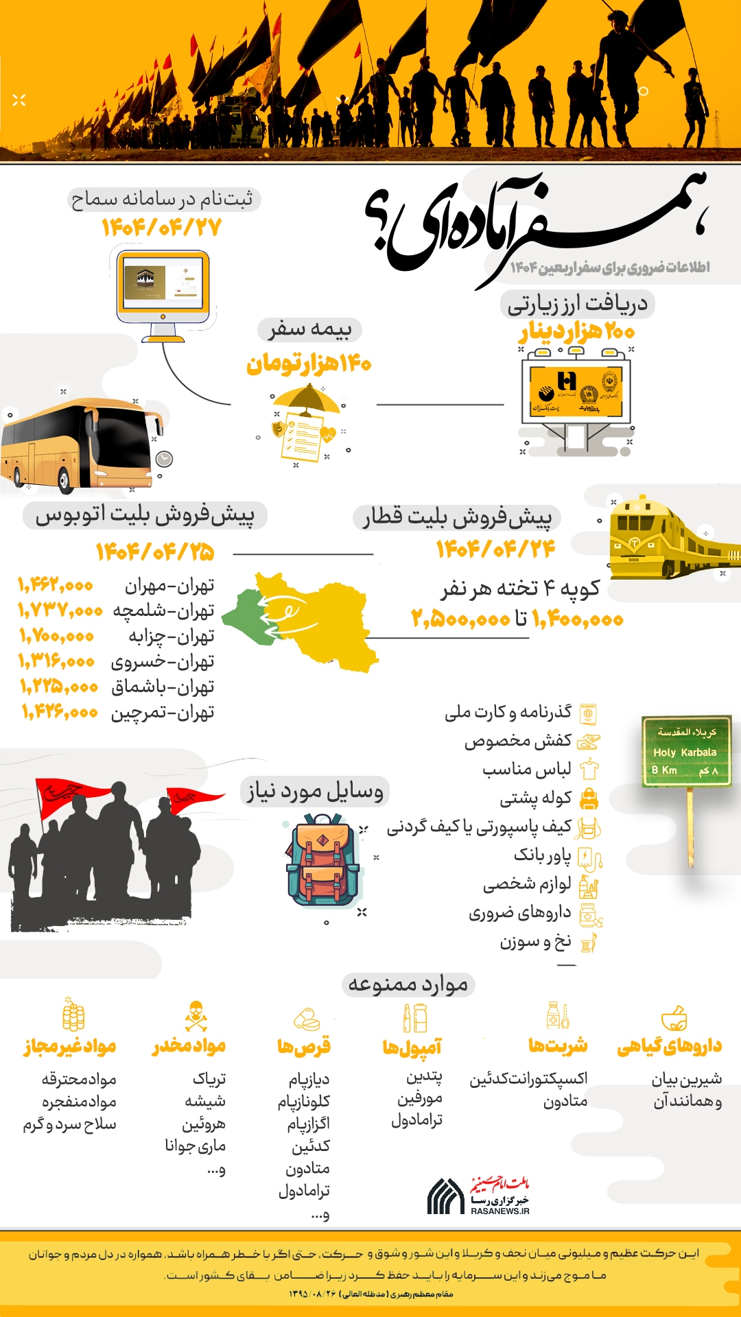 در این اطلاع نگاشت اطلاعات ضروری برای سفر اربعین ۱۴۰۴ را با هم مرور میکنیم.